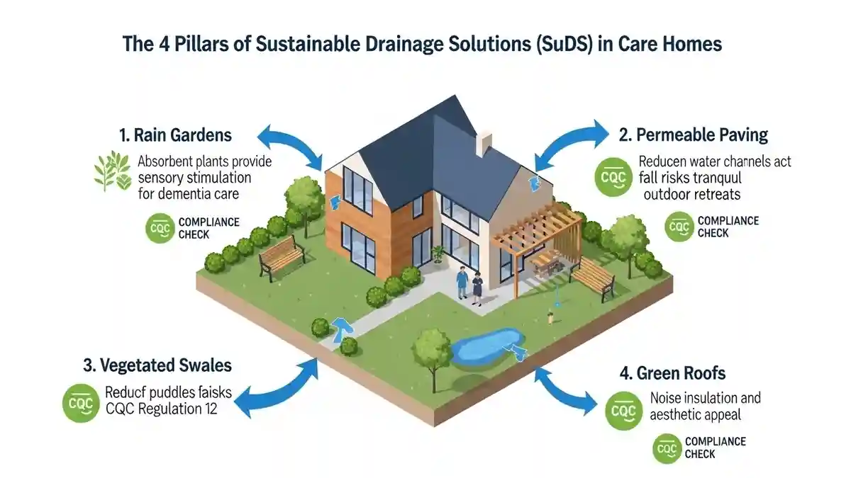 The future of sustainable drainage solutions CQC care home design is the integration of SuDS (Sustainable Drainage Systems). In Feltham, Policy EN18 of the Local Plan encourages SuDS to manage surface water runoff, which often plagues the surrounding area.